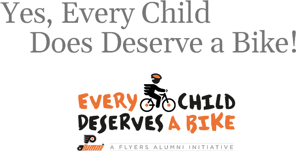 Your support is vital to the ongoing success and viability of “Every Child Deserves a Bike.” Year in and year out, the outpouring of love and support from Flyers fans has been tremendous. We thank you from the bottom of our hearts!