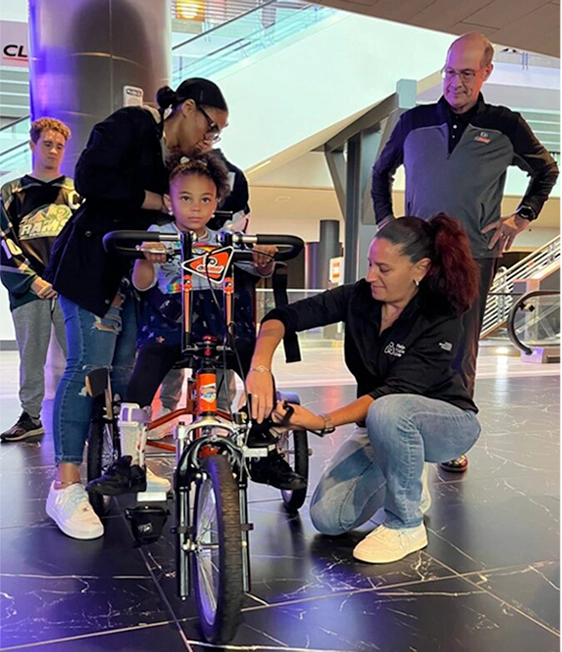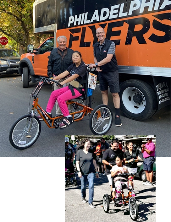Since 2020, the Flyers Alumni have worked directly with Radnor, Pennsylvania-based charity Help Hope Live, to identify families with special needs children whose quality of life and individual mobility may benefit from using an adaptive bicycle. When a recipient is identified, the Flyers Alumni fully fund the construction of an adaptive bicycle fully customized to meet the child’s challenges.