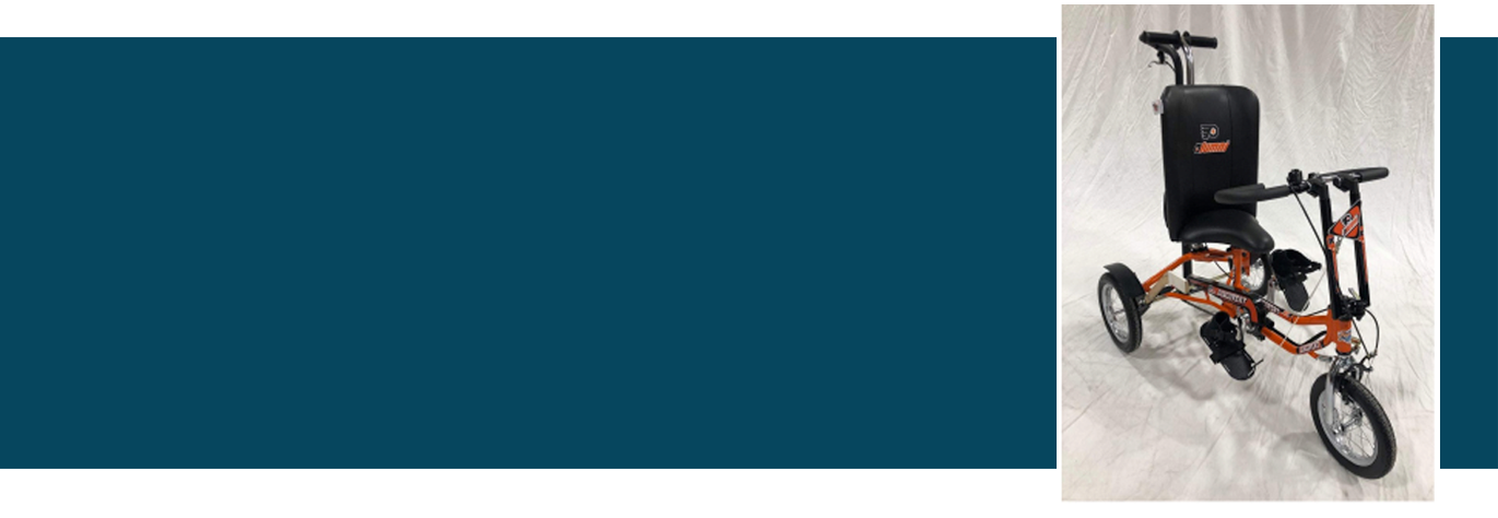 Lucy’s bicycle, like all that the Flyers Alumni will present in the “Every Child Deserves a Bike” program, features a wide array of modifications designed to enable her to confidently and independently operate it.